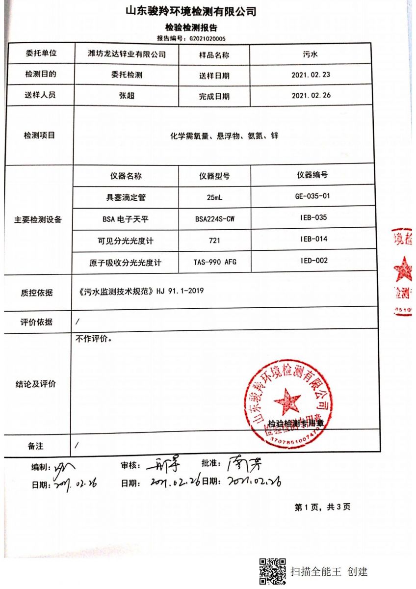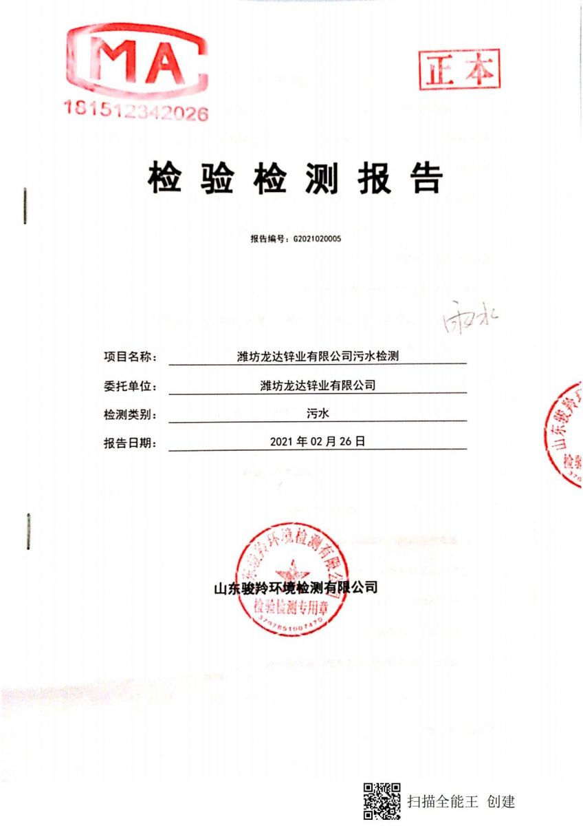 濰坊龍達(dá)鋅業(yè)有限公司2021年雨水監(jiān)測報告