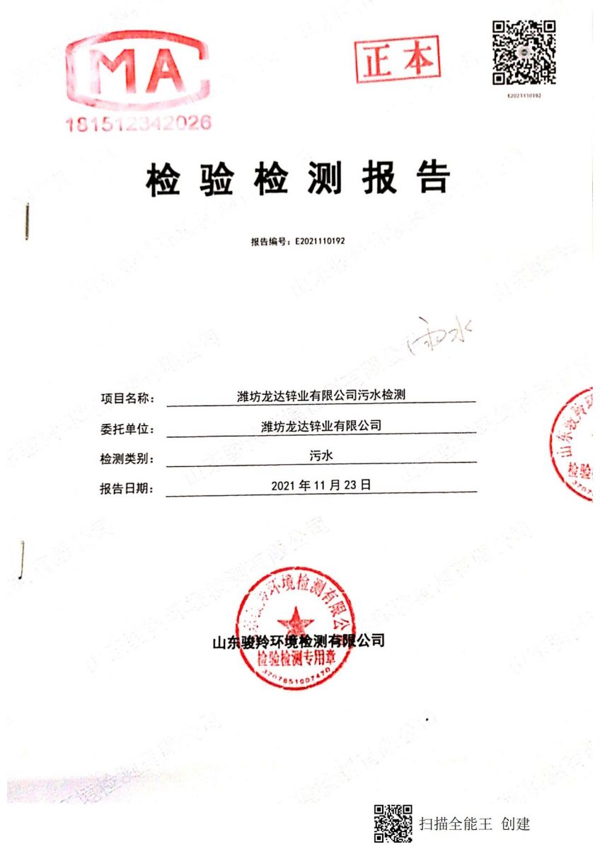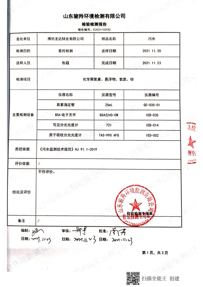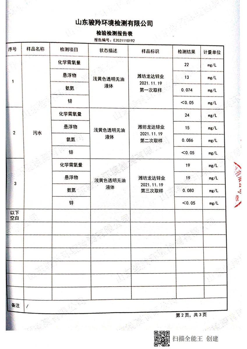濰坊龍達(dá)鋅業(yè)有限公司2021年雨水監(jiān)測(cè)報(bào)告