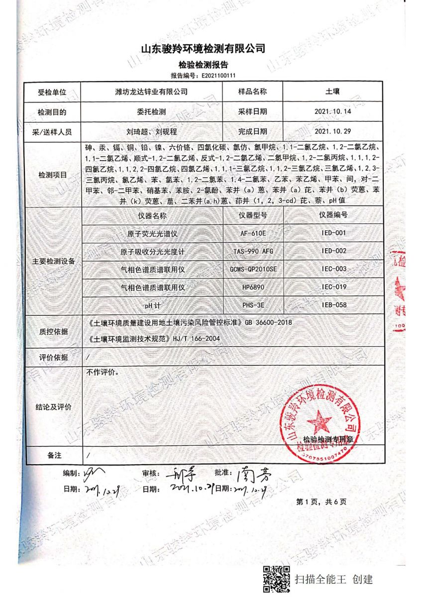 濰坊龍達(dá)鋅業(yè)有限公司2021年土壤監(jiān)測(cè)報(bào)告