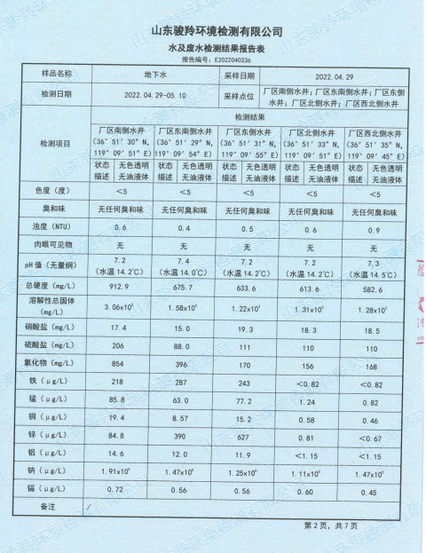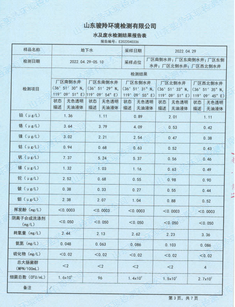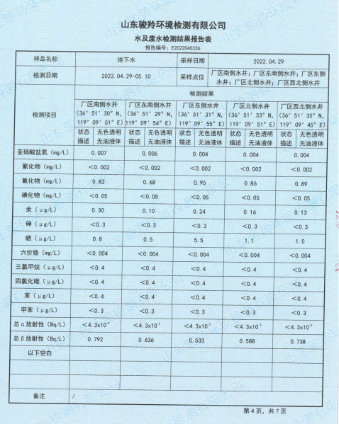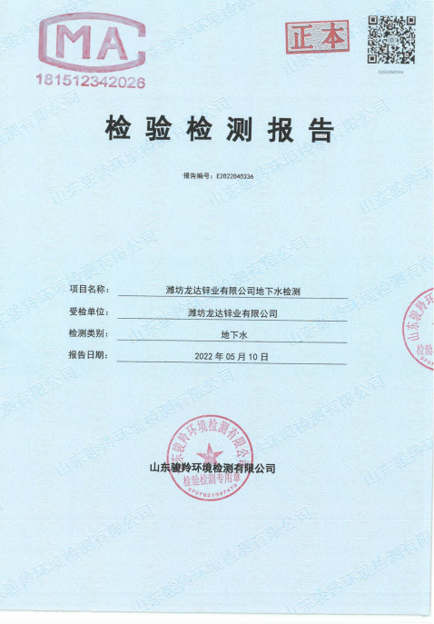 濰坊龍達鋅業(yè)有限公司2022年地下水監(jiān)測報告