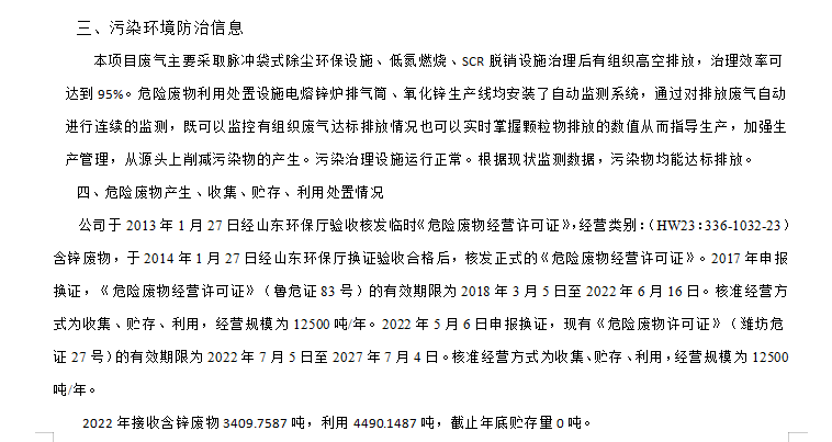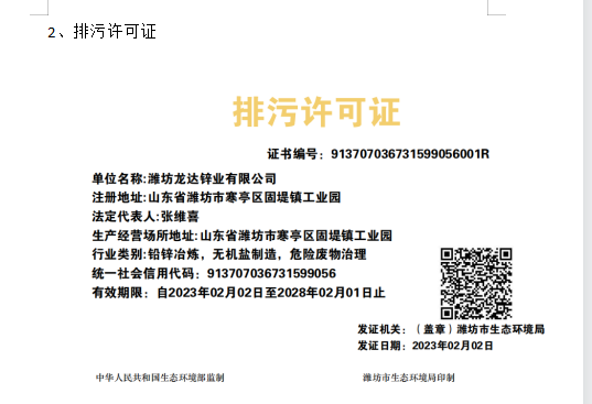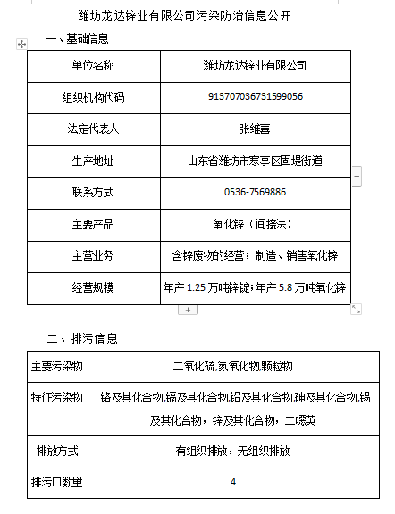 濰坊龍達(dá)鋅業(yè)有限公司污染防治信息公開